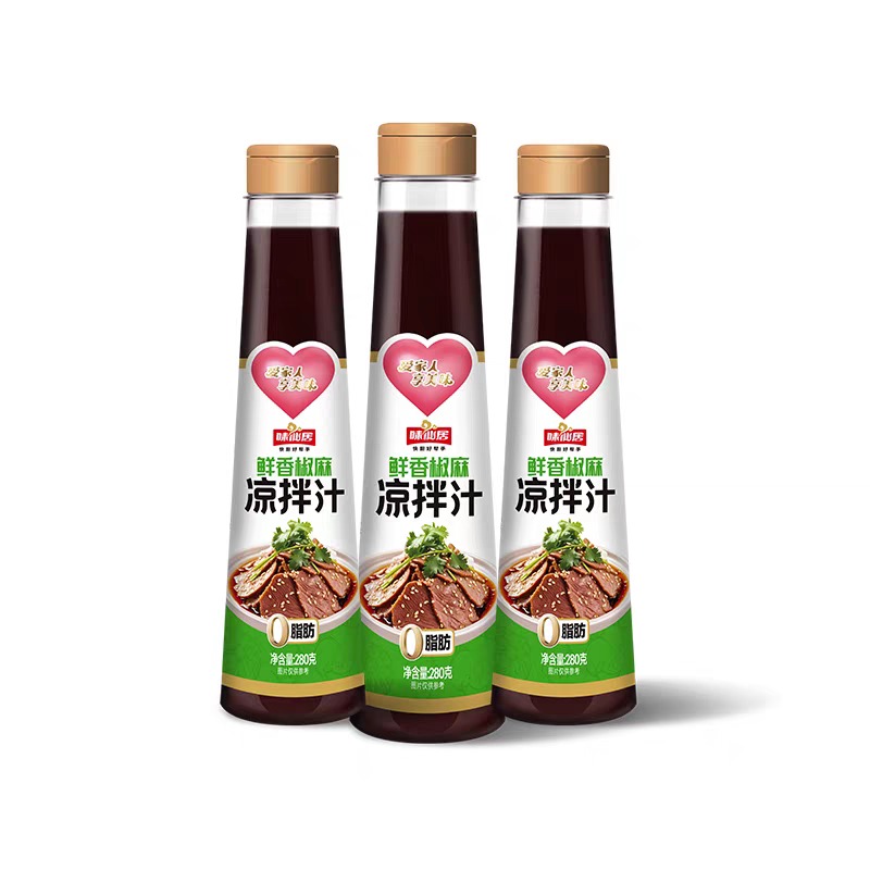 A bottle of Spicy and Numbing Cold Mix/Salad Sauce (鲜香麻辣 凉拌汁), with a net weight of 280g. This sauce provides the classic Sichuan ‘Mala’ (麻辣) flavor—a savory, umami, spicy, and mouth-numbing seasoning specifically formulated for cold dishes.