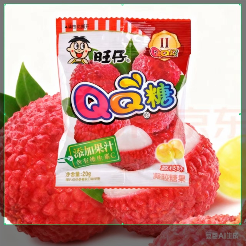 20g Packet of Wang Zai Q-Candy (旺仔 Q 糖). These are small, chewy lychee-flavored gummy candies, often referred to as “jelly-filled” due to their characteristic ‘Q’ or springy texture.