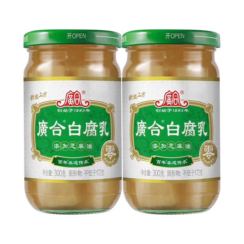 300g Jar of White Fermented Bean Curd (白腐乳) with added Sesame Oil (添芝麻油), from the classic Guang He (廣合) brand (established 1893). This is a creamy, savory, and aromatic traditional Chinese condiment.
